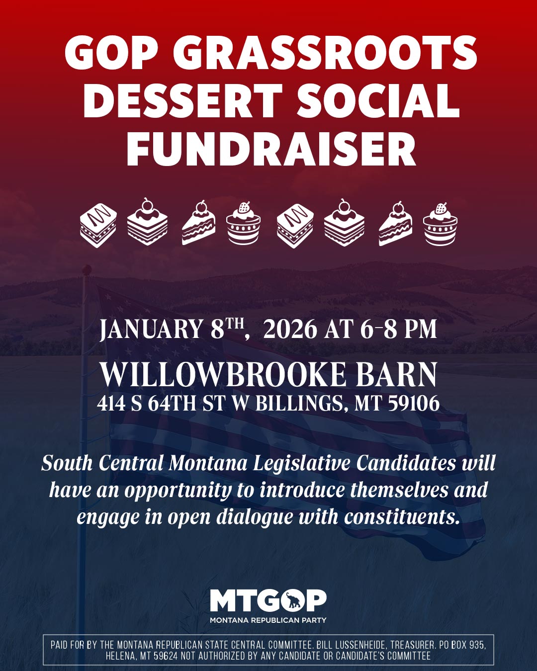 I had a fantastic time at the Willowbrooke Barn in Billings for the GOP Grassroots Dessert Social Fundraiser!